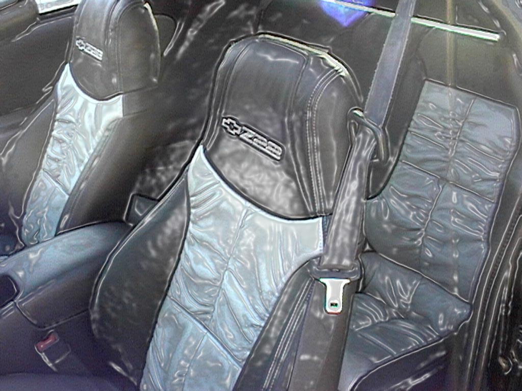 Tinted Windows by ACE Window Tinting 35th Anniversary Style Racing Stripes Custom Leather Interior from www.leatherseats.com 17x9 ROH RTs finished in Black Ice with 275/40ZR-17" Bridgestone Potenza RE730s 96-97 SS Spoiler Black Mast Power Antenna Brushed Stainless Steel Door Sills (with custom decals by Brent Fraker at F-Body Vinyl) Hooker Headers Classic Chrome Dual Euro Exhaust Tips MacEwen Silver Face Gauges (with custom decals by Teri Lane - s/n Teri9672 at LS1.com) MBA Aluminum Pedal Covers, Throttle Body Plate Removed Side Molding Red Calipers with brushed aluminum CAMARO Decals Silver Accented Interior Silver Z28 and Bowtie Emblems |